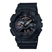 El G-Shock GA-110-1B tiene una caja de resina de 55 milímetros con una esfera color negro. Resistencia a la presión de agua de 20 bares, calendario, cronómetro, temporizador, alarma, y otras funciones. Garantía 1 año.